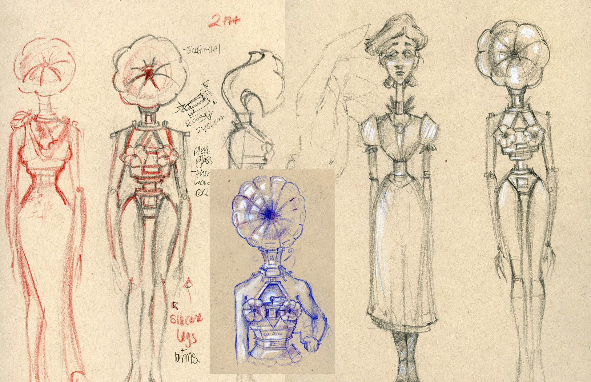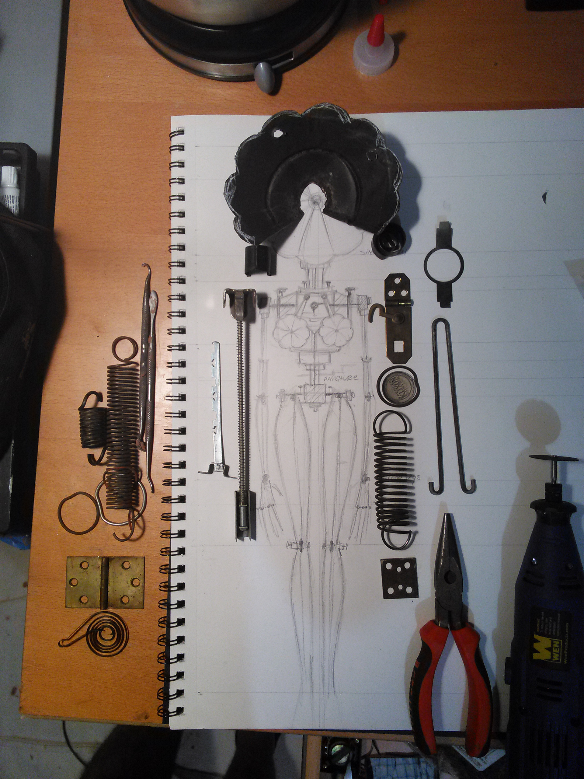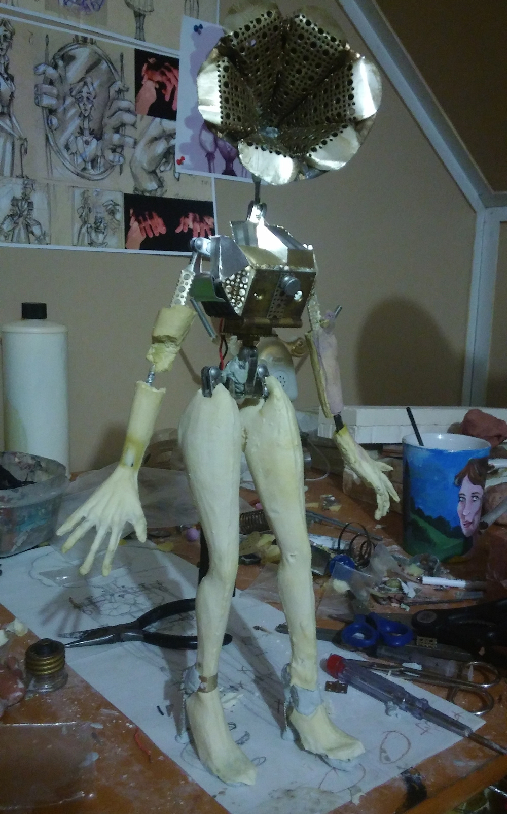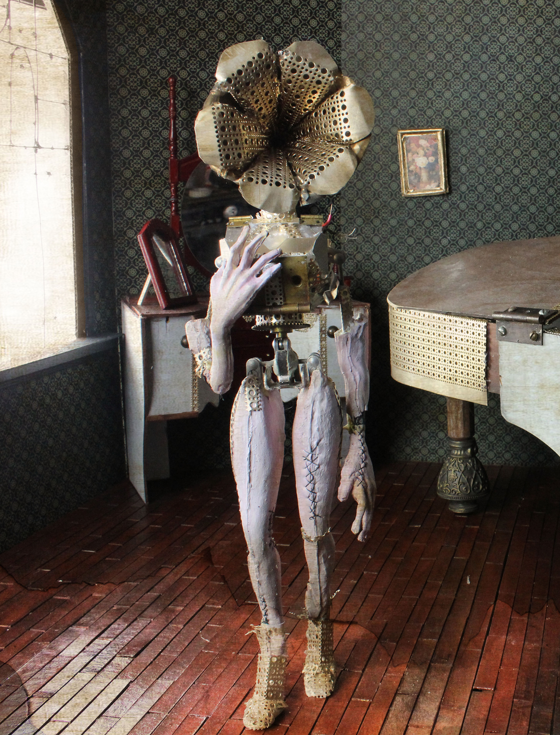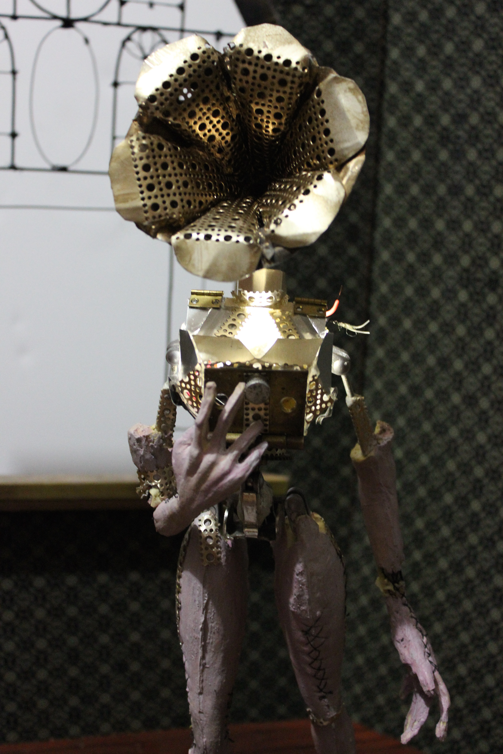 Stopmotion puppet for the short "Invention In C Major". Found materials, foam latex, steel puppet armature, and led lights.